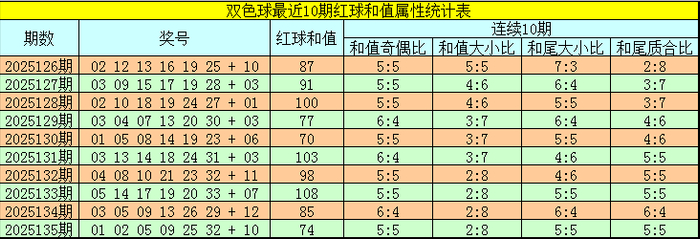 福彩双色球第2025136期红球和值综合分析: